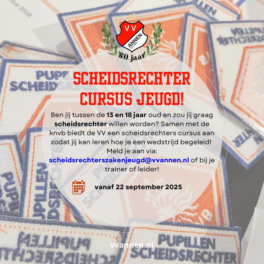 Dan kun je je aanmelden via scheidsrechterszakenjeugd@vvannen.nl of meld je bij je trainer of leider.